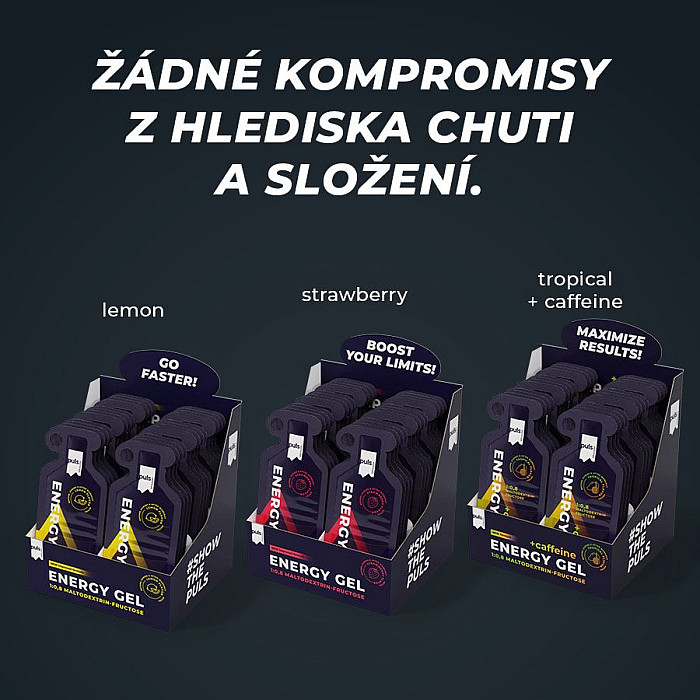 Podpora pro vytrvalostní výkon. Puls Energy Gel vás udrží v tempu i během dlouhých běhů. Díky optimálnímu poměru maltodextrinu a fruktózy 1 : 0,8 se gel rychle vstřebává a poskytuje okamžitý přísun energie. Obsahuje mořskou sůl s nejdůležitějšími elektrolyty. Praktické jednorázové balení umožňuje snadnou konzumaci kdykoli na cestách. Puls Energy Gel podporuje výkon při vytrvalostních sportech s dlouhým trváním, jako je běh, cyklistika nebo triatlon. Osvěžující citronová příchuť.