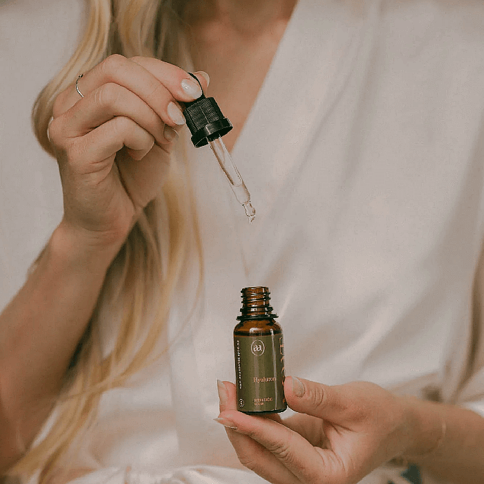 Kyselina hyaluronová hydratuje – uzamyká vodu v pleti, zajišťuje její pevnost a pružnost. Podporuje regeneraci a dodává mladistvý vzhled.