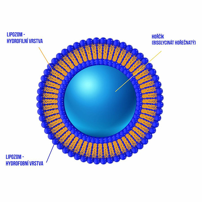 LIPOZOMÁLNÍ TRANSPORTNÍ SYSTÉM + CHELÁTOVÁ FORMA BIOAKTIVNÍCH MINERÁLŮ Liposomal Magnesium+ obsahuje hořčík v chelátové formě bisglycinátu hořečnatého, taurin, zinek v chelátové formě, selen v chelátové formě a chrom v chelátové formě. Bisglycinát hořečnatý je chelátová forma hořčíku s velmi dobrou vstřebatelností a využitelností pro tělo. V kombinaci s lipozomální technologií pak Liposomal Magnesium+ představuje špičku z hlediska efektivnosti suplementace. Z výzkumů vyplývá, že tradiční hořčíkové suplementy nemusí být tělem dostatečně využity. Jejich vstřebatelnost snižuje rychlé odbourání v organismu, nevhodná forma obsaženého hořčíku či jiné konzumované potraviny. Lipozomální forma oproti tomu nabízí vynikající vstřebatelnost. Forma lipozomů navíc výrazně snižuje riziko gastrointestinálních potíží spojených s tradičním suplementací, což je bonus pro všechny věkové kategorie! Náš lipozomální transportní systém nabízí vysoce vstřebatelnou recepturu bez obsahu umělých sladidel, umělých barviv, nebo geneticky modifikovaných složek. Profesor Dr. dr. Borut Štrukelj, M.Sc. (Department for Pharmaceutical Biology at the Faculty of Pharmacy, Ljubljana) potvrzuje, že lipozomální metoda je pokročilá farmaceutická technologie, která umožňuje, aby byla účinná látka lépe chráněna v zažívacím traktu, vstřebávala se lépe a rychleji, a tak dosáhla vysokých koncentrací v krvi. V ČEM JE ROZDÍL? ORIGINÁLNÍ TEKUTÉ LIPOZOMY [1, 2, 3]