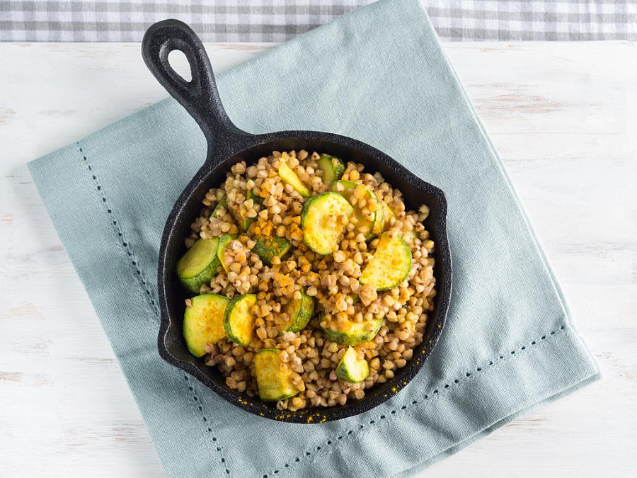 Podáváme s opečenou cuketou a posypané dalšími semínky.