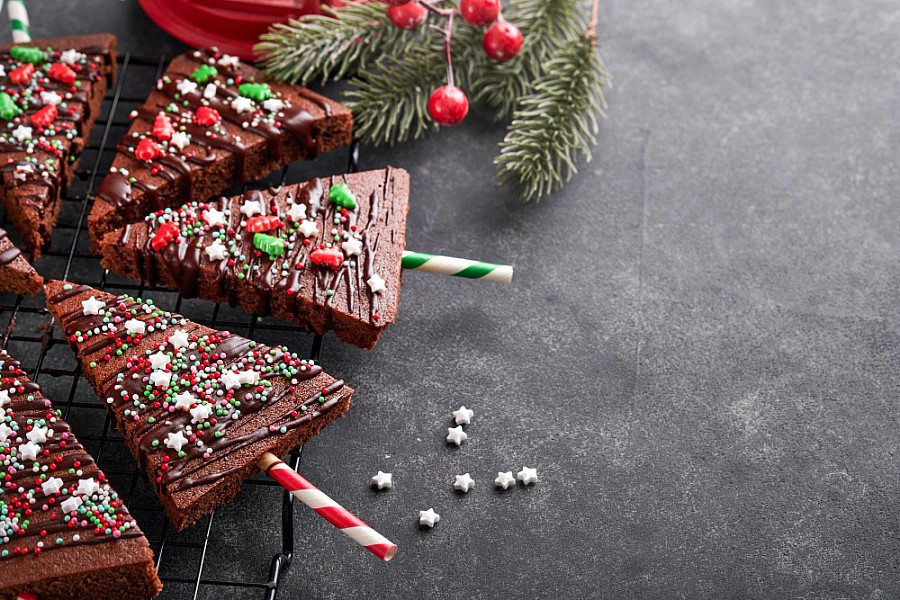 Pečeme cca 25 minut na 180 °C. Necháme zcela vychladnout. Potom můžeme rozkrájet na stromečky a ozdobit - oříškovým máslem, čokoládou, sušeným ovocem a ořechy.