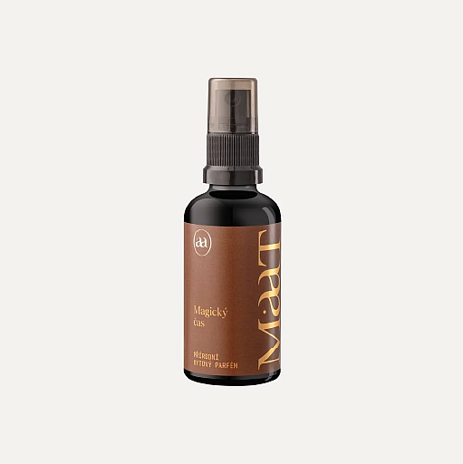 Hřejivá kombinace éterických olejů pomeranče, vanilky, lotosu, smrku černého a hřebíčku tiše rozprostře klid, bezpečí a špetku jemného luxusu. Vzácný oud vůni uzemní, zjemní a nechá smysly v hloubce a tichém potěšení. Magický čas přináší do prostoru hřejivé objetí pro chvíle, kdy chceme ztišit ruch světa, zpomalit a pozvat kouzlo i do všedních dnů.