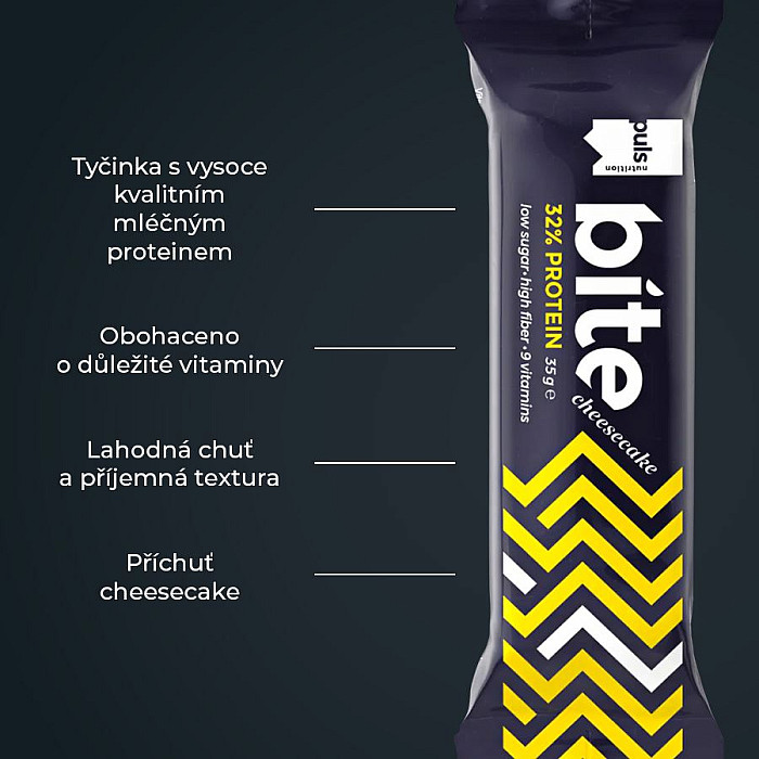 | Obohaceno o důležité vitaminy | Pouze 123 kcal na jednu tyčinku | Příchuť cheesecake | ||||||||
