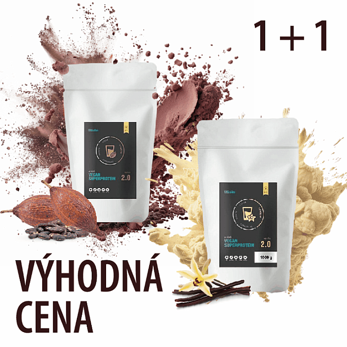 Vlastnosti produktu Balíček Vegan superproteinů 2x 1000 g (kakao + vanilka)