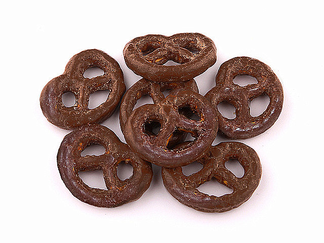 Hořká čokoláda 65 % (cukr, kakaová hmota, kakaové máslo, emulgátor: lecitiny, přírodní vanilkové aroma, sušené MLÉKO), preclíky solené 33 % (PŠENIČNÁ MOUKA, řepkový olej, jedlá sůl 2,3 %, mořská sůl 1,2 %, regulátor kyselosti: hydroxid sodný, droždí, JEČNÝ SLADOVÝ VÝTAŽEK, kypřící látka: hydrogenuhličitan sodný), lešticí směs (lešticí látka: arabská guma, cukr, med).